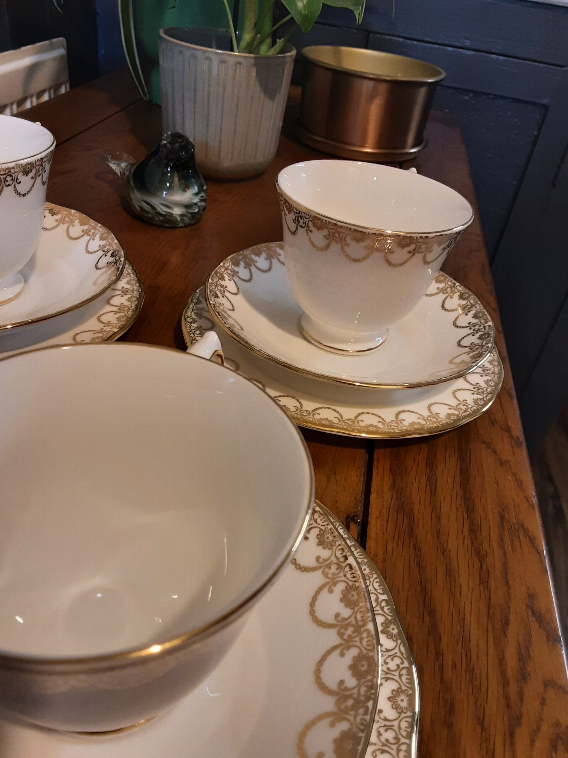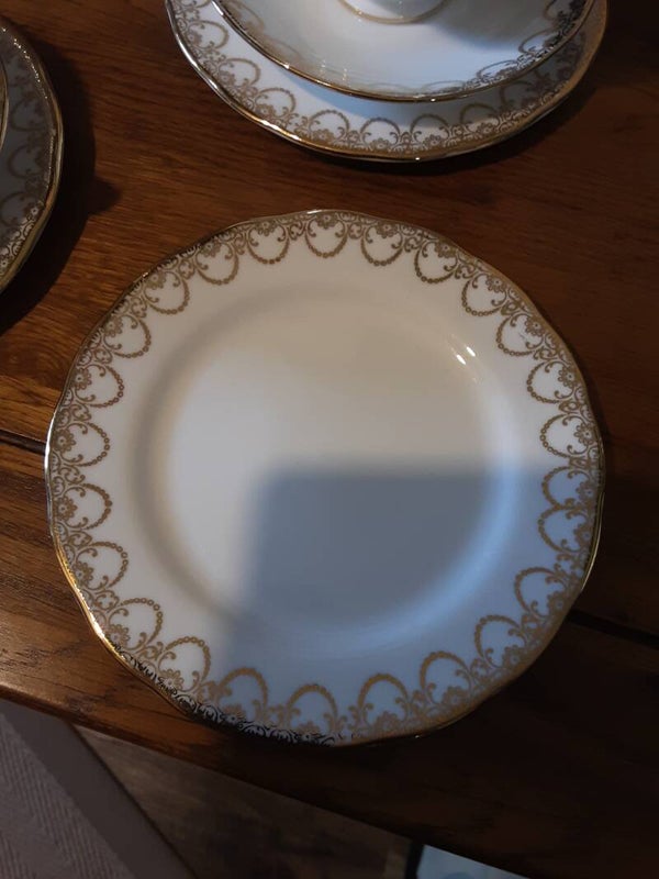 Queen Anne Trio Tea Set, Tea Cup, Saucer, and Side Plate.
