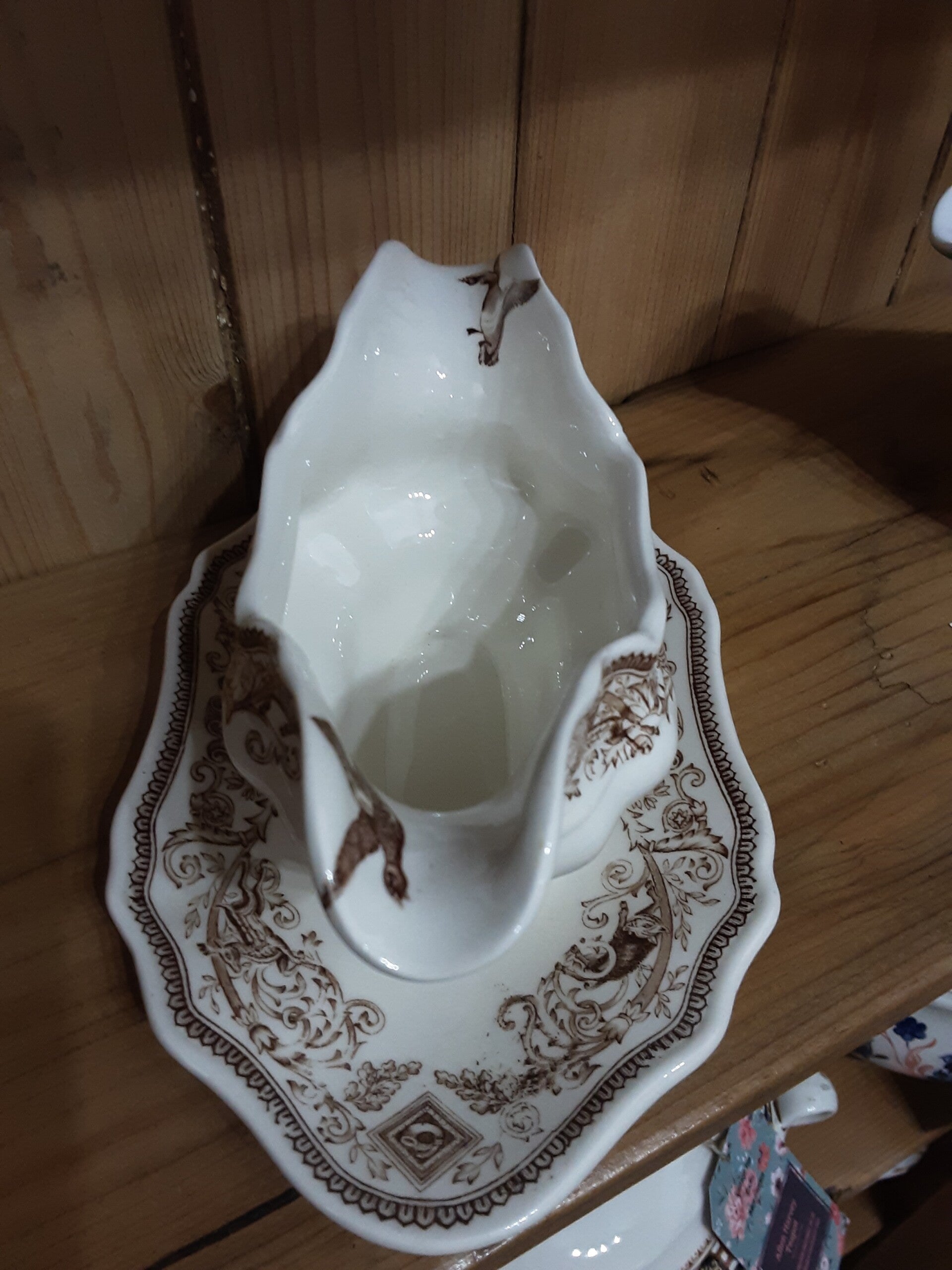 Masons Game Birds Gravy Boat with Attached Underplate.