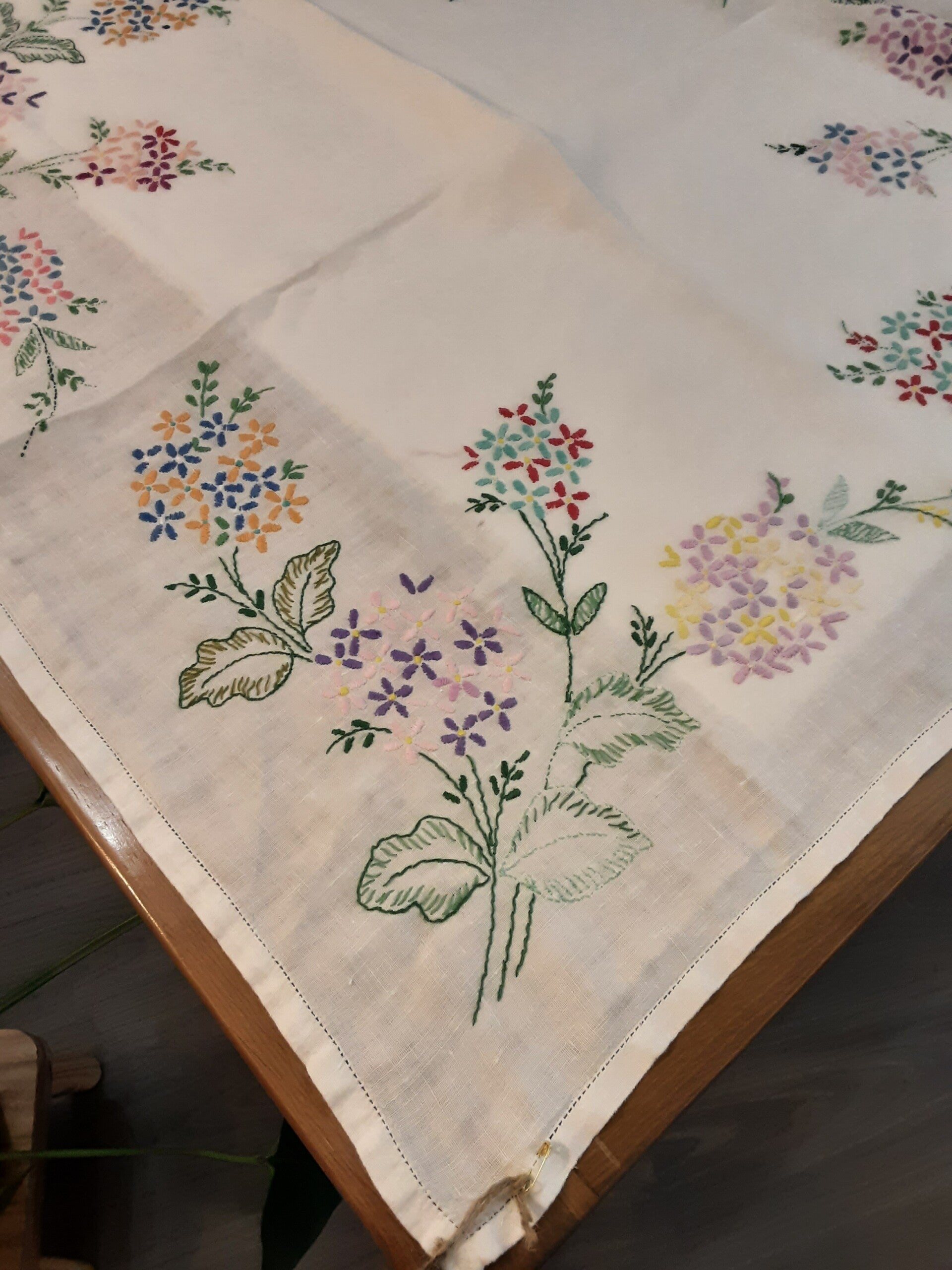 Beautiful Embroidered Linen Floral Design Table Cloth, Beautiful Colours.