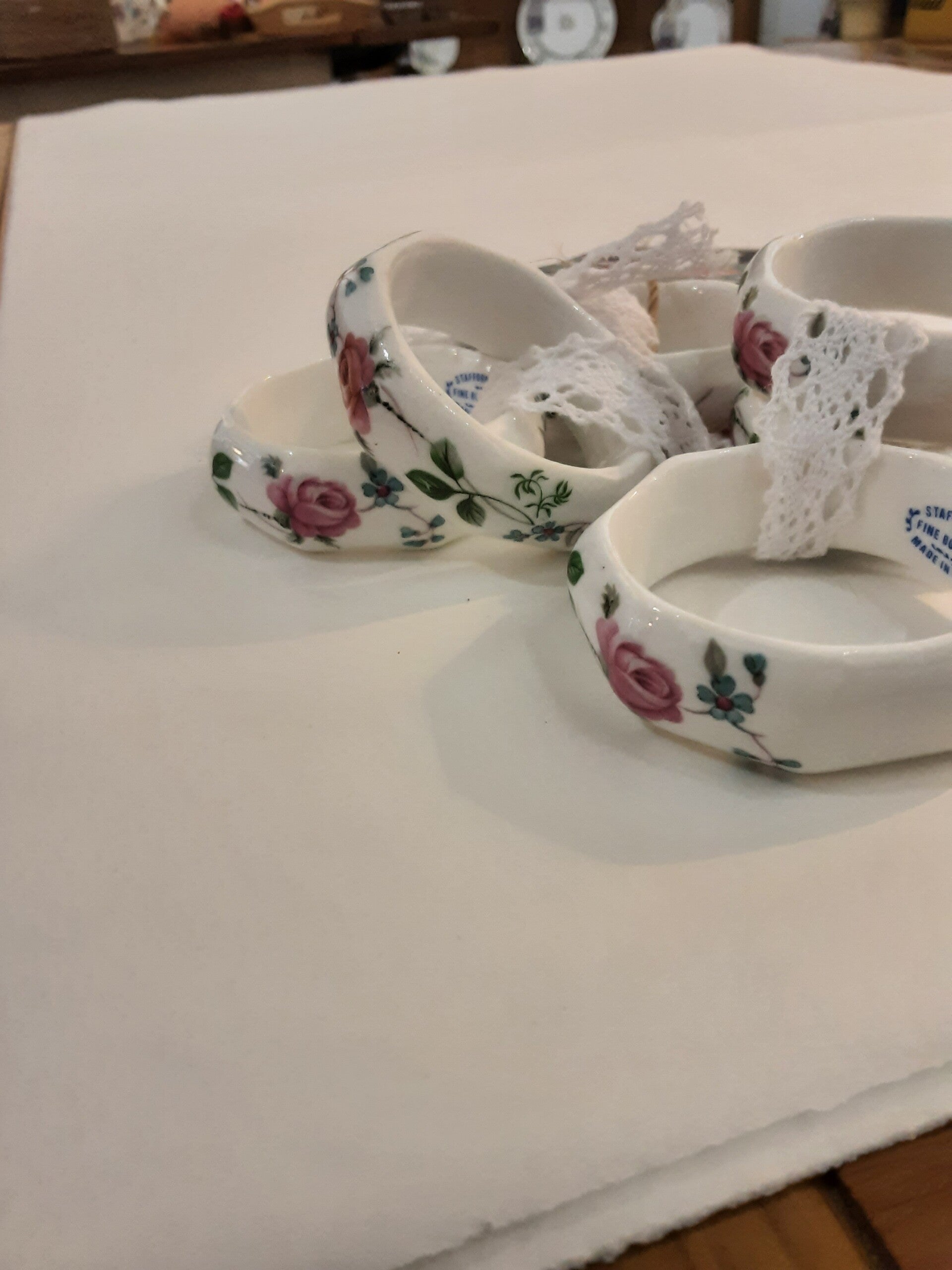 Staffordshire Fine Bone China Napkin Rings - Set of 6.